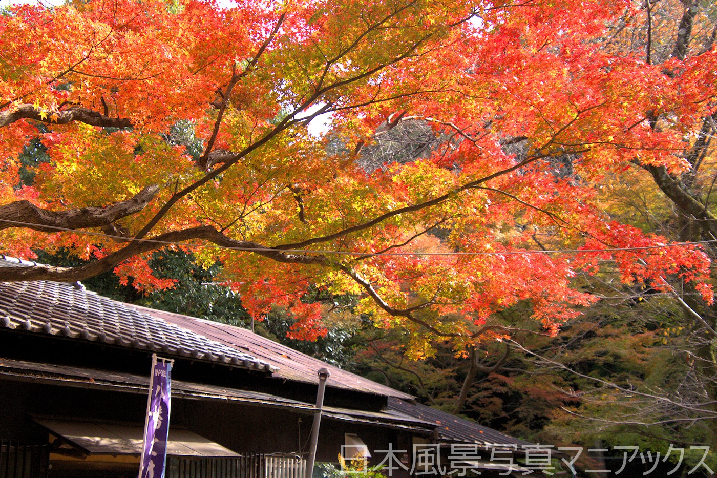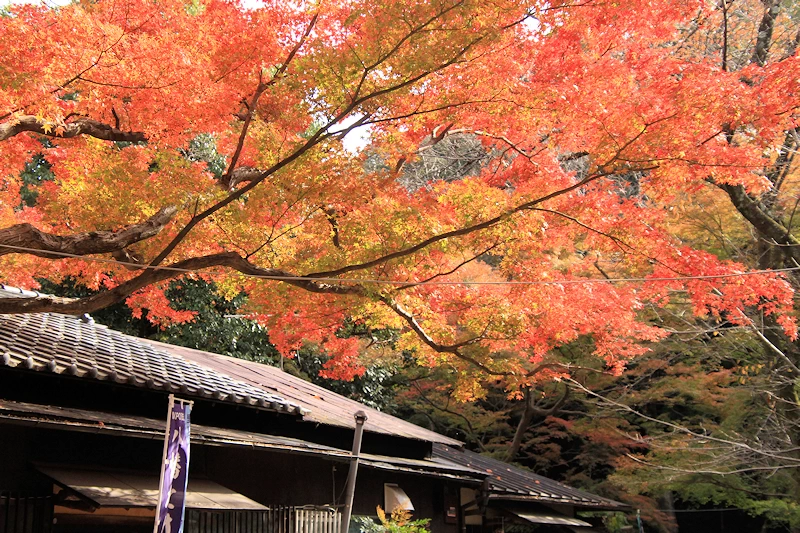 - 表参道や裏参道の石畳の道沿いに、ヤマモミジやカエデが点在している。ケーブルカーで登ることもできるが、片道を徒歩で移動すると、より間近に紅葉の風情を感じられる。