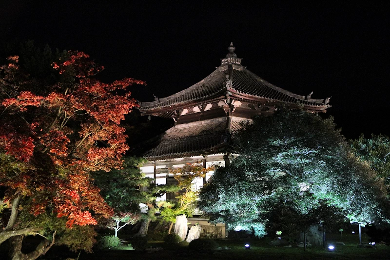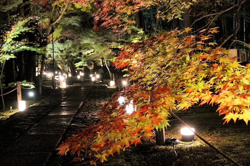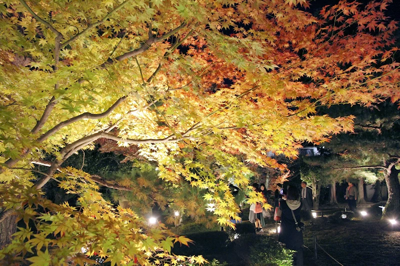 - 例年、秋の夜間特別拝観が開催される。1日限定150名などの完全予約制で行われることが多く、静寂の中で光に浮かぶ幻想的な紅葉を独り占めできる贅沢な体験が可能。