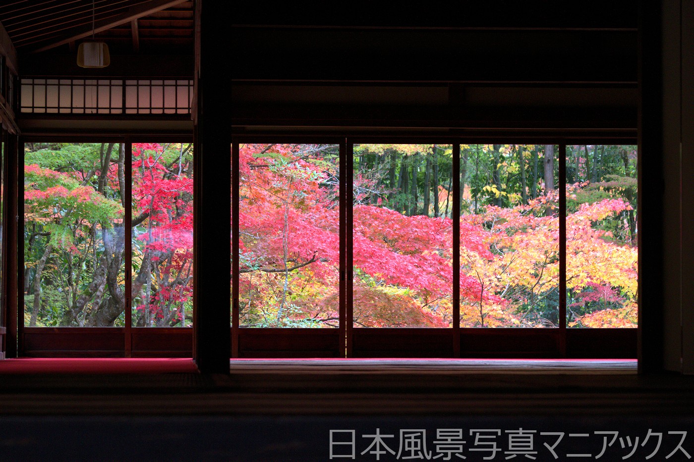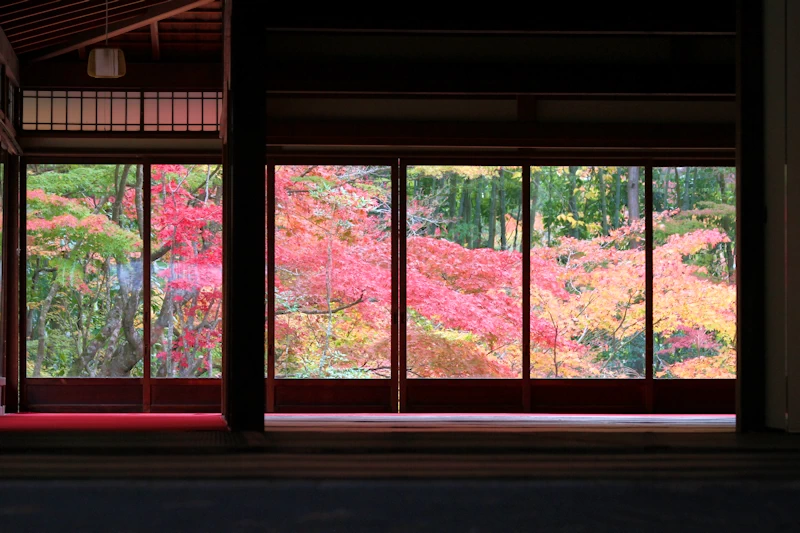 - 書院の入り口付近では、柱や鴨居を額縁に見立てた「額縁紅葉」の構図で写真を撮る参拝者が多く見られる。