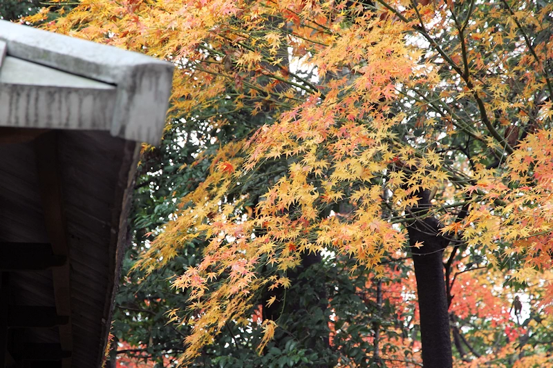 - 徳川頼宣の寄進による豪華な拝殿や、伏見城の遺構とされる表門などを背景にした京都らしい情緒ある紅葉風景が随所に見られる。