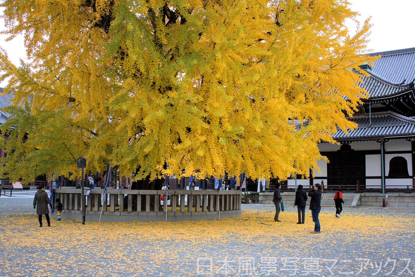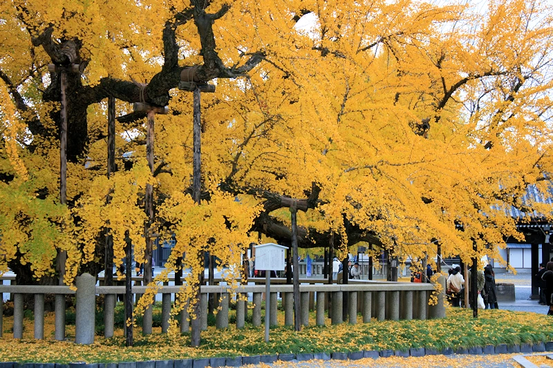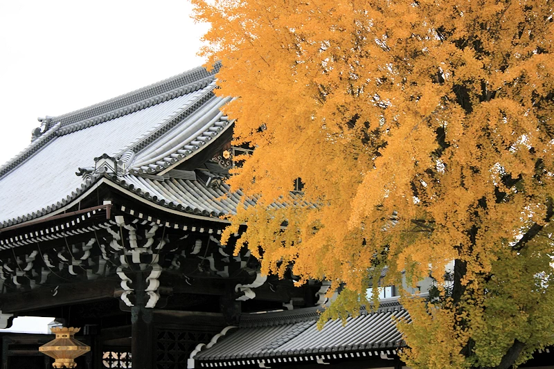 カエデよりも巨大なイチョウの黄葉が主役となる、京都でも唯一無二の秋の景観を楽しめるスポット