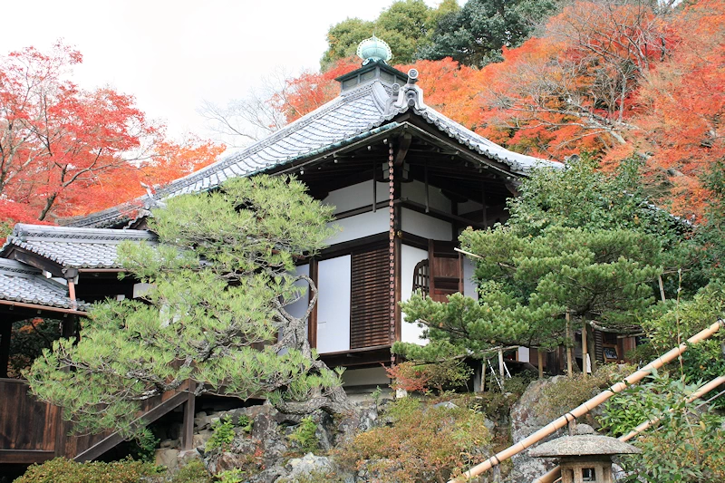 - 「谷の御所」と呼ばれた尼門跡寺院ならではの気品ある障壁画や御所人形を拝観しながら、書院越しに眺める紅葉は非常に優雅。