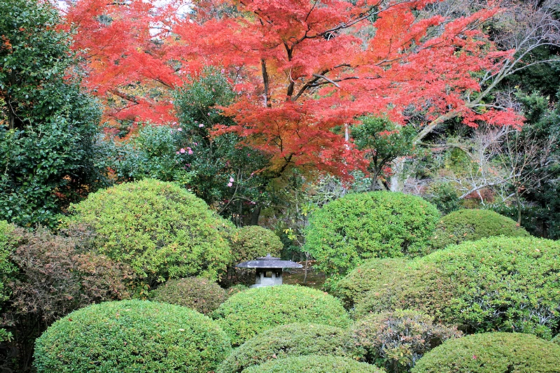 - 建物の中から静かに庭を眺めることができ、額縁のように切り取られた秋の風景を堪能できる。