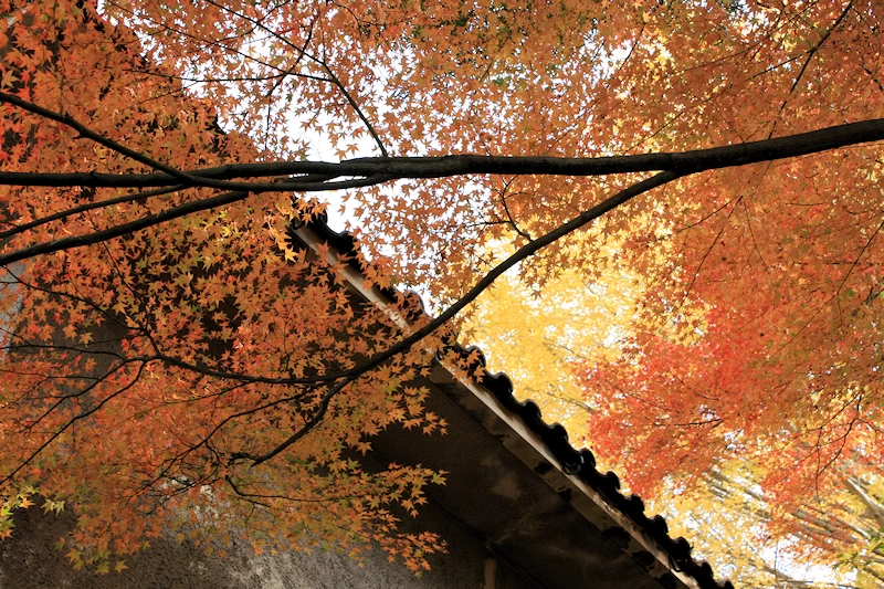 - 2月上旬には、石畳や苔の上に落葉が広がる「散り紅葉」の情緒ある風景が楽しめる。