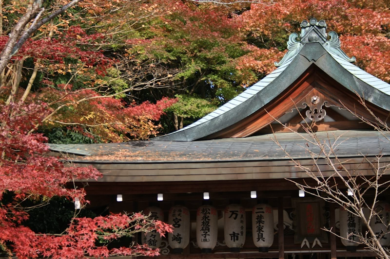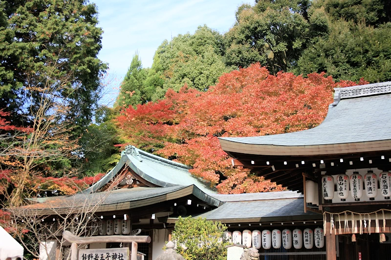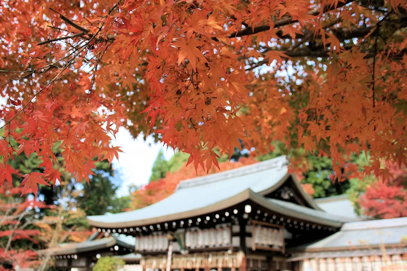 - 神社の背後にそびえる若王子山の豊かな自然が色づき、境内を包み込むような深みのある紅葉が楽しめる。