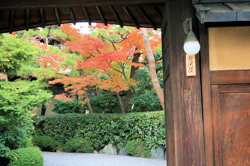 七代目小川治兵衛(植治)の手による池泉回遊式庭園を有する和風旅館。南禅寺や永観堂といった有名スポットのすぐ近くにありながら、比較的静かに紅葉を楽しめる東山エリアの穴場として知られる