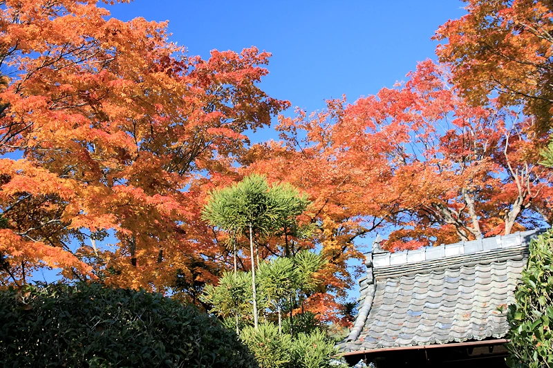 - 丸窓は禅と円通の心を、宇宙の広大さを表現している。円に切り取られた真っ赤な紅葉は、迷いのない清らかな境地を感じさせる。