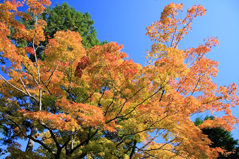 - 有名観光地のような喧騒がなく、無人になる瞬間もあるほど落ち着いて紅葉を堪能できるのが最大の特徴。