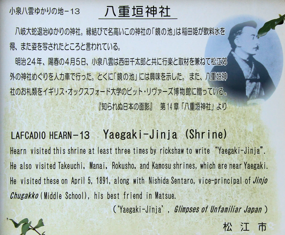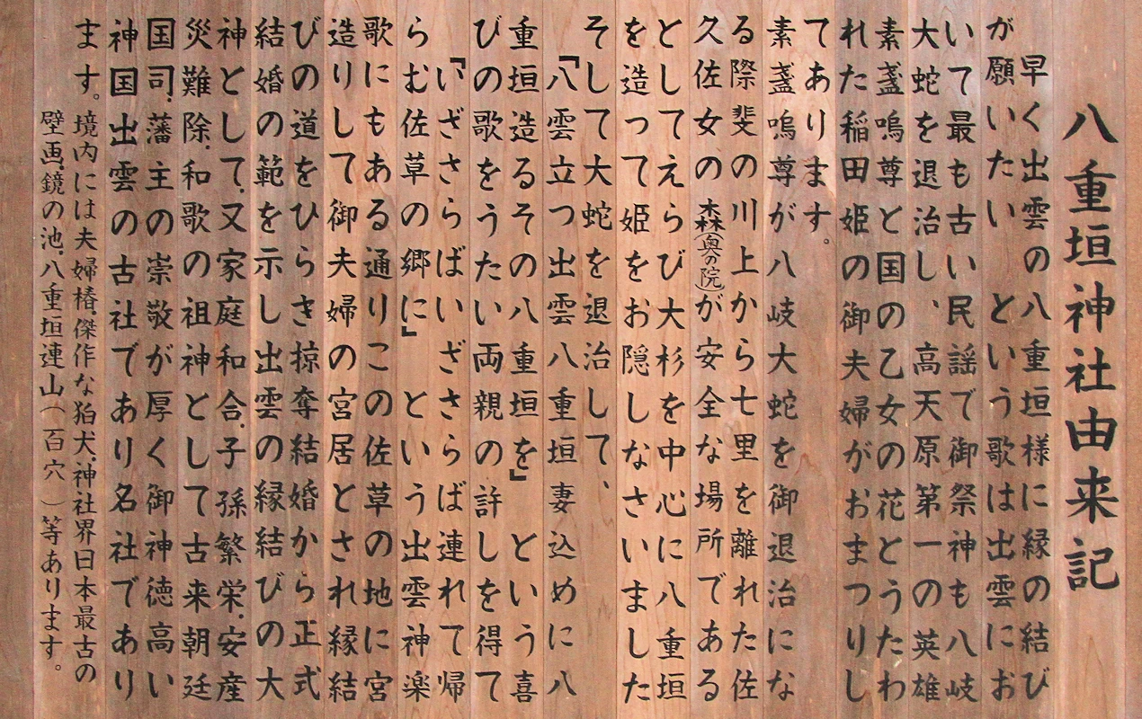 | ゆかりの人物 | 素盞嗚尊、稲田姫、小泉八雲、西田幾多郎 |
